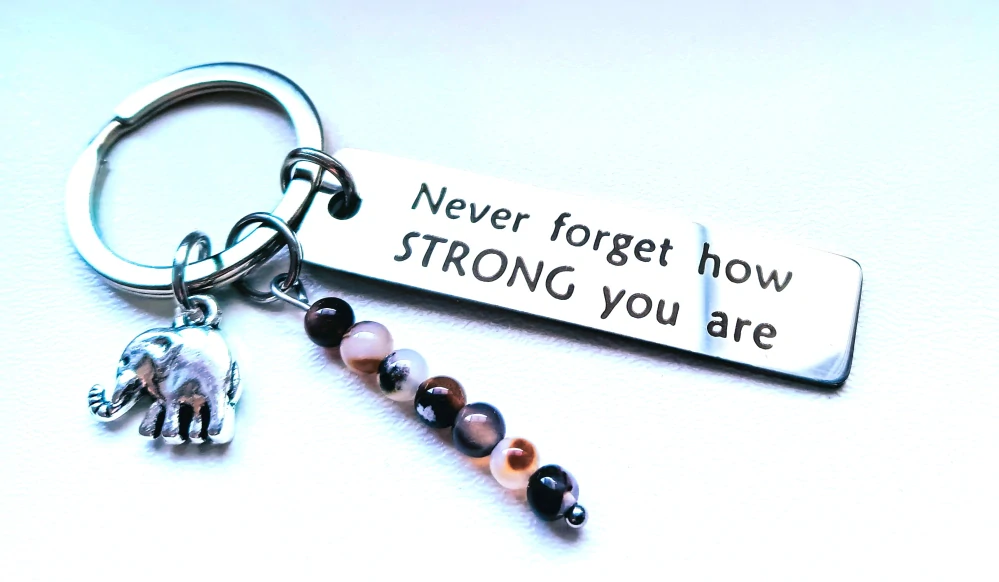 Decentní klíčenka z malých korálků z Achátu a nerezové oceli.
