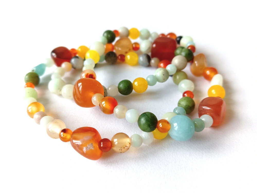 Použité minerály jsou čistě přírodní: Achát, Amazonit, Karneol, Jadeit, Růženín..