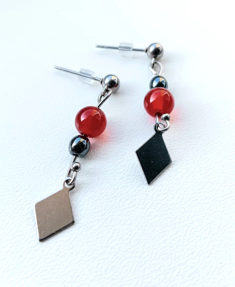 Náušnice z nerezové oceli, Karneolu a Hematitu.