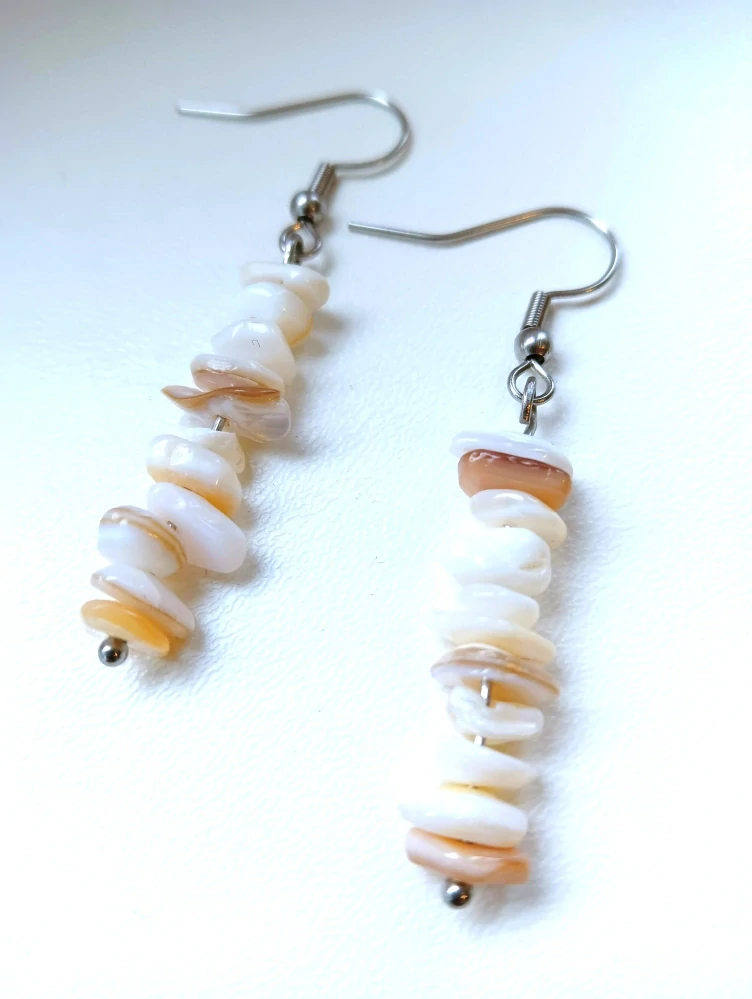 Náušnice z pravých Mušlí a z nerezové oceli.
