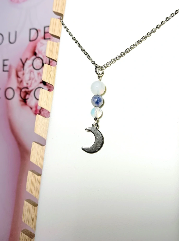 Náhrdelník z Měsíčního kamene, Sodalitu a nerezové oceli.