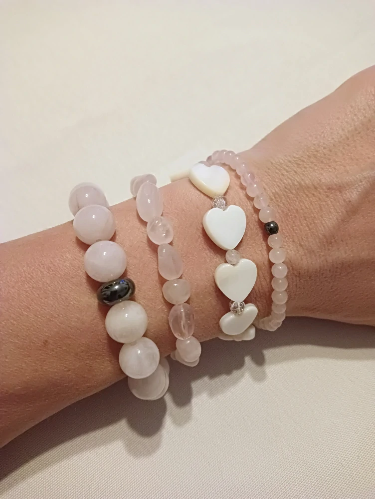 Sada čtyř náramků z Růženínu, Hematitu a Křišťálu.