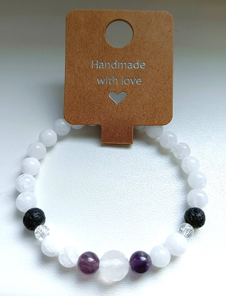 Krásný náramek vhodný pro nevěstu i na běžné nošení. Jadeit, Křišťál, Ametyst, Růženín a láva