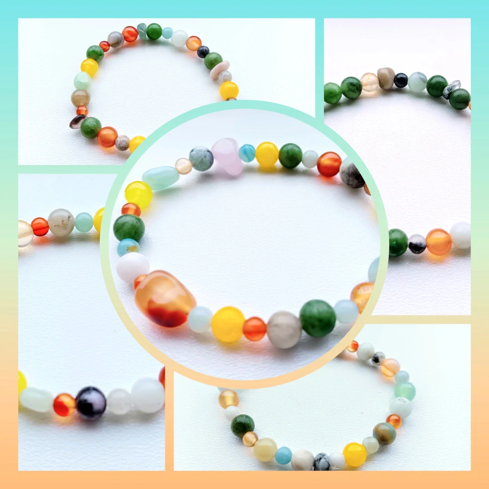 Použité minerály jsou čistě přírodní: Achát, Amazonit, Karneol, Jadeit a Růženín.